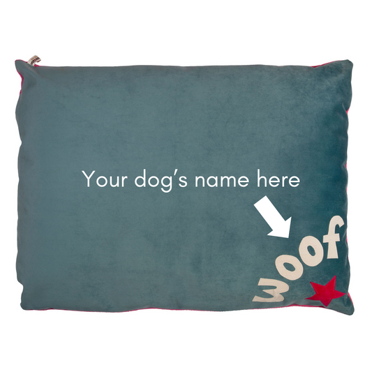 SPARE COVER to fit our dog beds in duck egg blue velvet with WOOF letters and pink star