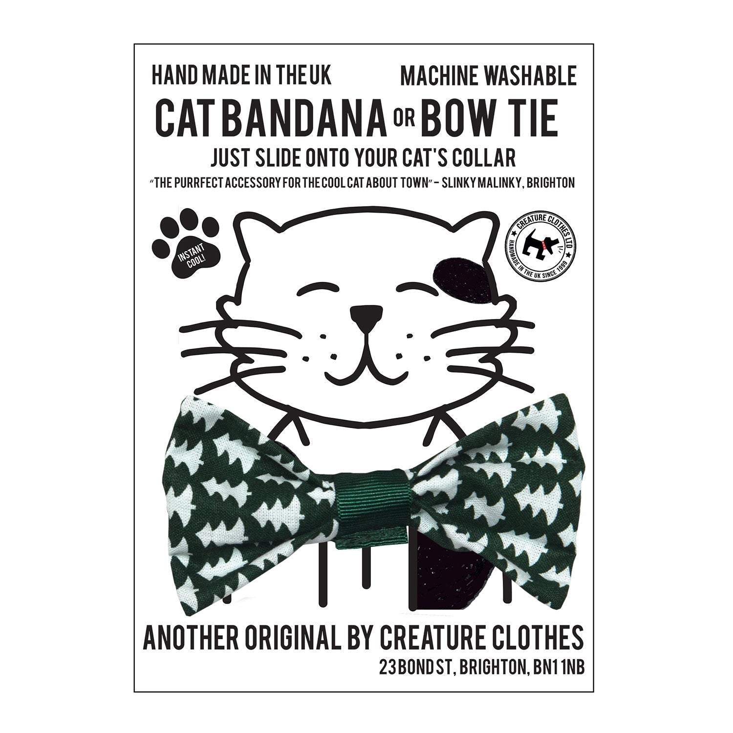 Our Golden Holly Dog & Cat Bow Tie in features an elasticated back loop so you simply slide it on to your pet’s existing dog collar. Perfect for cool dogs & cats everywhere.