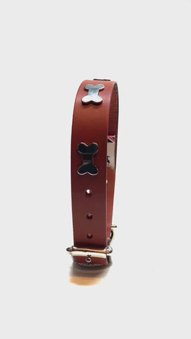 The leather that we use 3-4mm thick in black, tan, chocolate or red. Each leather holds different properties, outlined below to help you find the perfect match for your pooch.