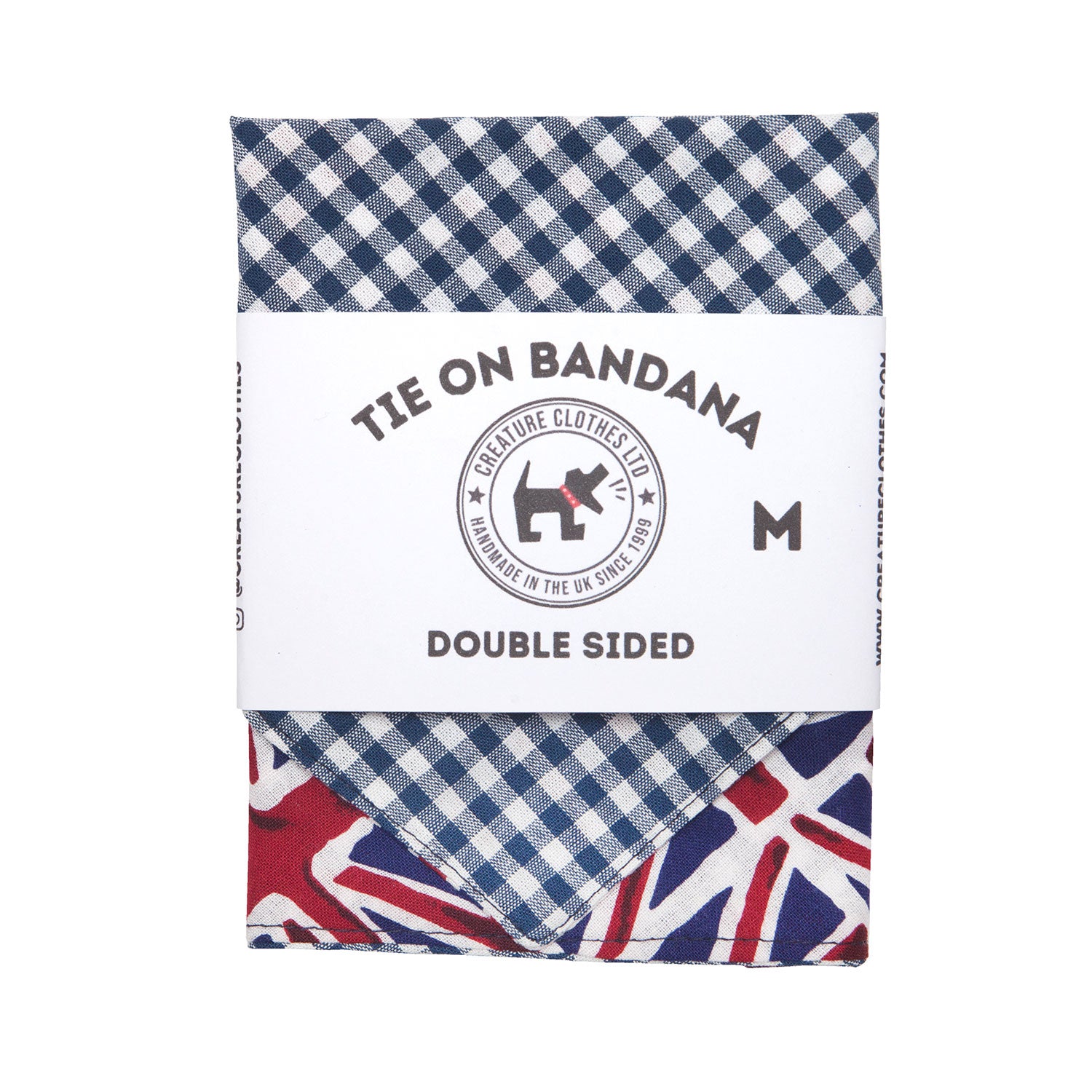 Tie on Dog Bandana - Union Jack Flag and Blue Gingham